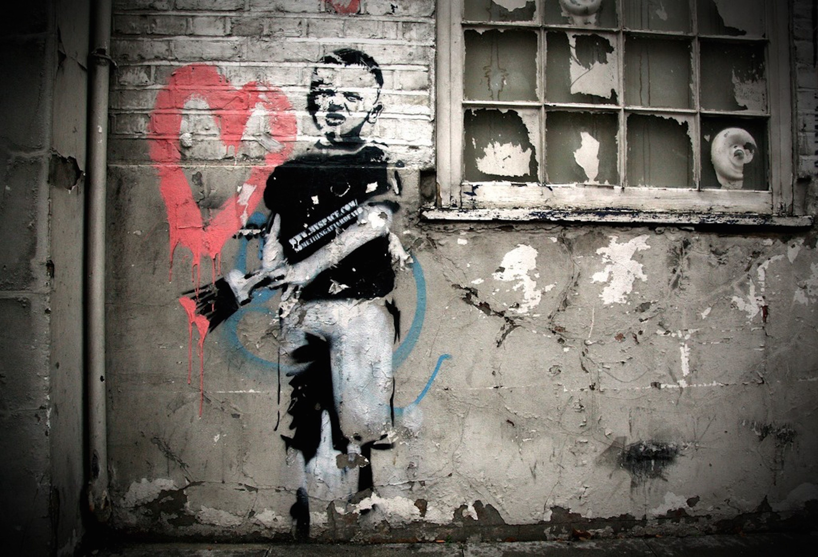 "no necesitamos más héroes, solo a alguien para sacar la basura", banksy... Nessa impactante obra, banksy faz uma montagem relacionando a … Una de las más famosas obras de banksy, dentro de una saga de zebras que incluye grafittis cuadros, y arte plástico. Love is in the air (soldier throwing flowers).. Sus obras se han hecho populares al ser visibles en varias ciudades del mundo, especialmente en londres.